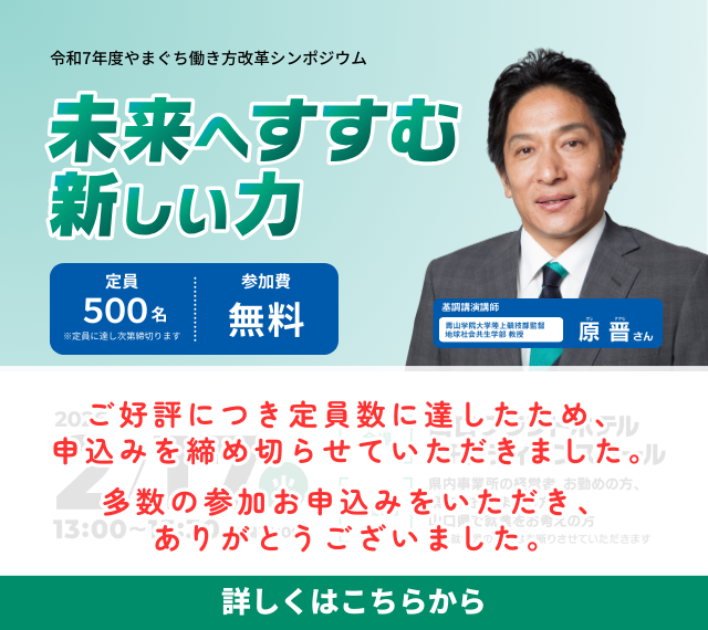 【申込受付締切ました】令和7年度やまぐち働き方改革シンポジウ・・・