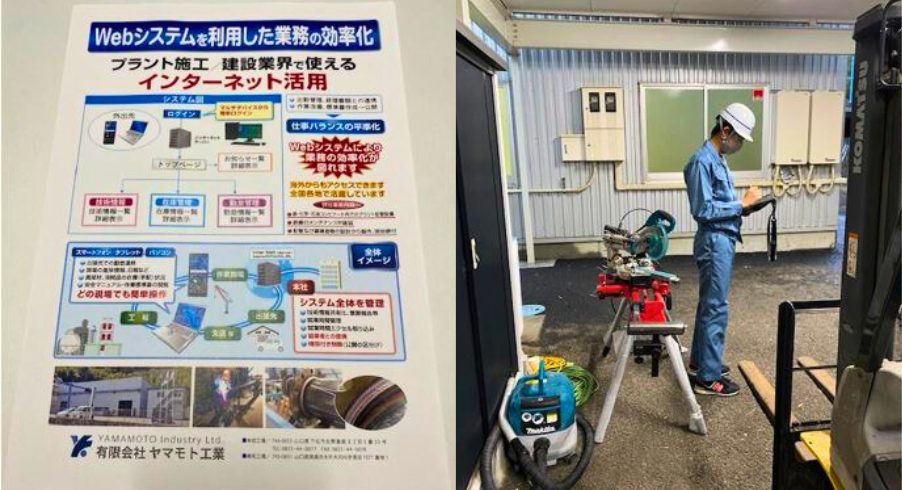 弊社では業務の効率化と精度向上を目指し、DX化の推進と独自のWebシステム(周南ものづくりブランド認定)を構築しました。現場の進捗や資部材、消耗品の在庫情報、従業員の勤怠を一括で管理できるようになり作業効率がアップしました。